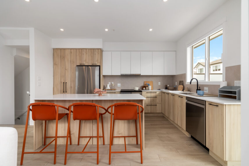 Discover a variety of floor plan options, including private garages, and a mix of private and shared outdoor spaces offering the best of both indoor and outdoor living. At Echo, spacious open concept main floor living areas, featuring over-height 9’ ceilings and large windows, mean there’s room for everyone. Savour the sophisticated styling in your new thoughtfully designed kitchen.